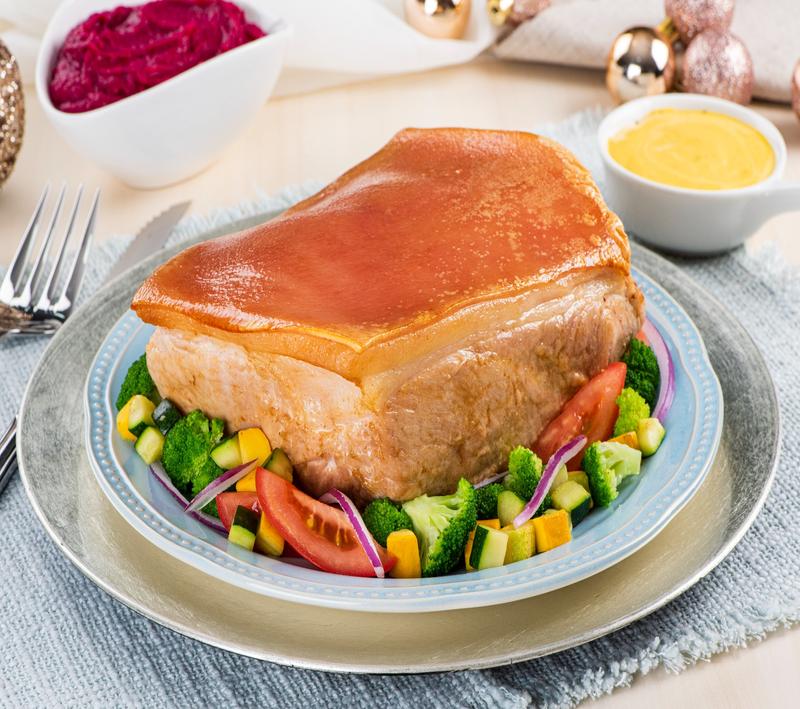 - Cocine la media pierna de cerdo según las instrucciones del empaque y porcione.